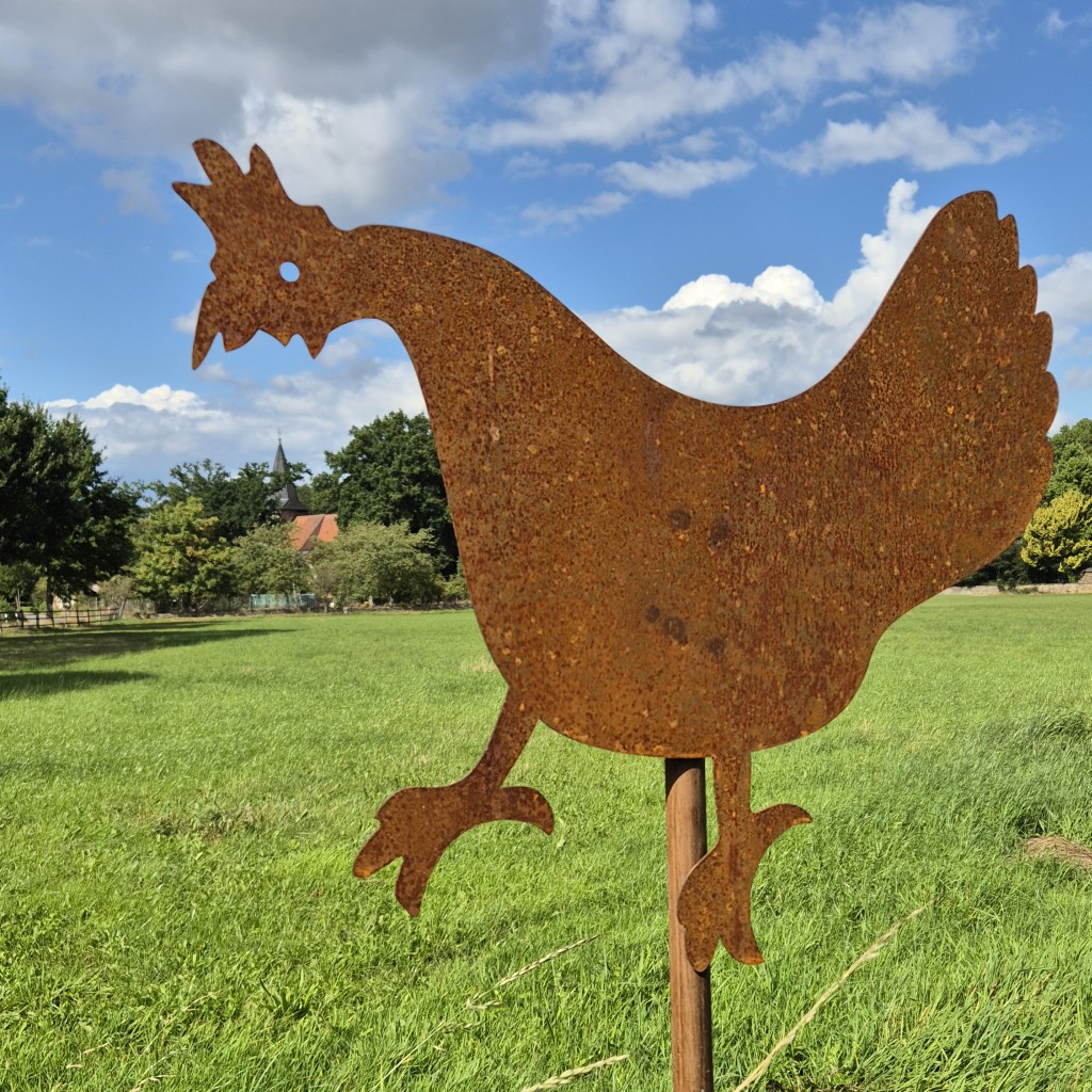- Henne aus Cortenstahl für Außenbereich, 60 cm breit: 50 €